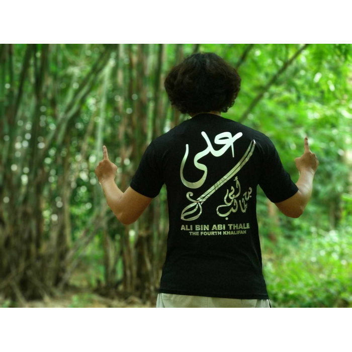 kaos islami kaos dakwah kaligrafi arab ali bin abi thalib lengan pendk