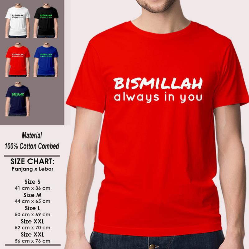 Kaos Dakwah Muslim Pria Lengan Pendek Keren SP-LSMSAK208 BISMILLAH ALWAYS IN YOU Islami Kekinian